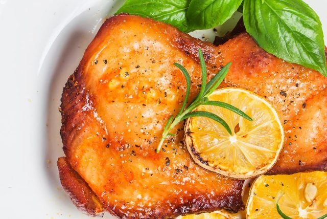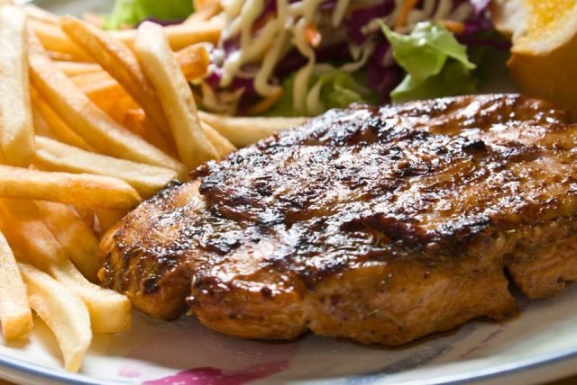 o 220 Grs. De Sobre barriga al Horno, Porción de Papa salada, Plátano, arroz blanco, Guacamole.